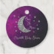 Över babyduschen i måne med silver måne och stjärnor mot en svart och rosa lila himmel
