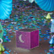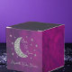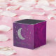 Över babyduschen i måne med silver måne och stjärnor mot en svart och rosa lila himmel