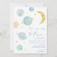 Över Måne Blue Boy Space Baby Shower Inbjudningar