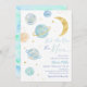 Över Måne Blue Pastel Space Baby Shower Inbjudningar