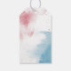 Dreamy boy och Girl twillingar babydusch är en favorittagg med vattenfärgen struktur i blått och rosa på baksidan med faux guld glitter måne och stjärnor. I texten står det: "Vi är över måne." "Tack för att du firar med oss."