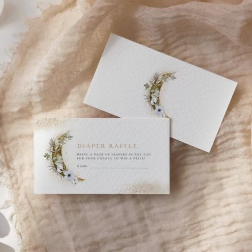 Det här vackra inbjudan har guld-text, en boho blommigt måne, guld damm och molnaccenter.