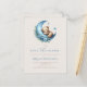 Den här söta boho babyduschinbjudan innehåller en söt vattenfärgssovit som sover på ett blått halvmånsfärgat måne som dekoreras med blåa blommor, ovanför ord "över måne" i blåhandskript. Anpassa texten med namn i skript som ska skrivas mamma och detaljerna i sans serif-teckensnitt på en beige bakgrund. Perfekt för en pojkes babydusch.
