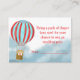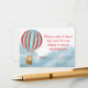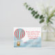 Barnkalas förvarningskort med en söt björnunge i en varmluftsballong som flyger över molnen. #moln #himmel #babyshower #förvarningskort #varmluftsballong #björnunge #björn #himmel #moln