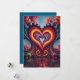 Vibrant snurrande mönster utgör en hjärtform omgiven av livliga, färgstarka sensorer och orber. Reflektioner dansar på vatten yta nedanför, vilket förstärker den energiska och vismiska atmosfären.