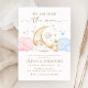 Gratulerar till glädjen med den här fantastiska genderna "Över Måne", visa inbjudan! Med en charmerande halvmånsstjärna, omgiven av gyllene stjärnor, drömmande rosa och blå moln, och ett sött baby flaska, krymper den här konstruktionen perfekt stollig och elegans. Den varma, neutralt- och delikata skripttypografin skapar ett tidlöst sfärisk tema som passar perfekt för din magiska visning. Anpassa enkelt din händelseinformation och få redo att stå som värd för en oförglömlig "han eller hon"-utställning under stjärnorna!