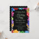 Denna vackra och livliga inbjudan är perfekt för alla tillfällen. Den svarta bakgrunden är prydd med en mängd olika färgglada band, vilket skapar ett slående och festligt utseende. De kontrasterande färgerna på banden poppar mot den svarta bakgrunden och lägger till en touch av elegans och flärd i designen. Oavsett om du planerar en födelsedagsfest, baby shower eller någon annan speciell händelse, är denna inbjudan säker på att göra ett statement och sätta tonen för en rolig och minnesvärd firande.