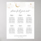 Välkomna dina duschgäster med det här sittkartan med moln och stjärnor med guld måne. Ge plats åt fler (eller färre) gäster genom att klicka på knappen "anpassa" och minska eller öka teckensnittet storlekt. Extra bord kan också strykas. Förutom varje gästs placering.