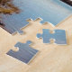 Över Sjö-fotot som togs när man stod på stranden tittar ut över sjö skapat på ett pussel för familjeunderhållning.