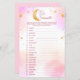 Måne och stjärnor med en rosa och vit drömmolnbakgrund har den här roligt tjejen, babyduschspelet lakan temat "Över Måne". Det har spruckit ord allt som gäller baby. Ett underbart och enkelt spel där gästerna spelar vid babyduschen.