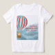 Guest of honor's t-shirt for mother to be baby shower party features cute cub in a hot air balloon flying over the sky.