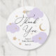 Over the Moon themed favor tag featuring watercolor purple clouds, gold stars and a moon. Perfect for a baby shower. Matches the Over the Gold Moon Collection found on Adore Paper Co. shop on Zazzle. Customize with name, event date or custom text.