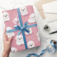 Bilden visar en upprepad mönster av vackra, fluffy Bichon Frise-valpar på en rosa bakgrund, sammanflätade med vita prickar