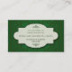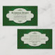 En kelly som gröna damastast mönstersmink bakgrunden på denna visitkort fördriver informationen om affären, sitter i en utsmyckad ram. Detta är ett riktigt mångsidigt kort som kan användas av återförsäljare, wholesalers, konsulenter, formgivare, händelseplanners eller de i textilfält. Tillgängligt i omväxlande färger med att matcha produkter.