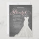 Överför dina gäster en inbjudan som de ska för att inte glömma! Denna chic och eleganta inbjudningskort för möhippan presenterar ett bröllopsklänningtema. För en stansad även mer minnesvärd inbjudan välj formar, texturerat papper eller ett dubbelt tjockt papper.