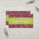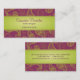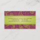 En exotisk look, som ska, får uppmärksamhet på något nätverkandetillfälle. Limefrukt gröna paisley planlägger mot rikt purpurfärgat smink bakgrunden av denna visitkort. Information om kontakt skrivar ut mot ett ljust - det gröna lutningmusikbandet på både bekläda och baksida. Ett överdådigt söker efter textil- eller insidaformgivare, händelsekoordinatorer eller detaljister. Tillgängligt i omväxlande färger med att matcha produkter.