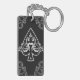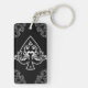 Lycklig keychain som presenterar en svartvit utsmyckad vintageöverdängare av spadeillustrationen med barocka blom- smyckningar.