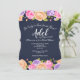 En fantastisk blommig inbjudan med en marinblå bakgrund och en mängd rosa, lila och gula blommor som gränsar till de övre och nedre kanterna på kortet. (Design av Freepik). <br/><br/>Kortet är lätt att anpassa med din text, teckensnitt, typsnittsfärg och val av sex papperssorter.<br/><br/>Inte exakt vad du söker? Alla våra produkter kan utformas för att passa dina behov utan extra kostnad.<br/><br/>Kontakta oss helt enkelt på askcottonlamb@gmail.com<br/><br/>Koordinerande produkter tillgängliga: