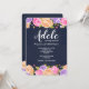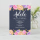 En fantastisk blommig inbjudan med en marinblå bakgrund och en mängd rosa, lila och gula blommor längs med de övre och nedre kanterna på kortet. (Design av Freepik). <br/><br/>Kortet är lätt att anpassa med din text, teckensnitt, typsnittsfärg och val av sex papperssorter.<br/><br/>Inte exakt vad du letar efter? Alla våra produkter kan utformas enligt dina önskemål utan extra kostnad.<br/><br/>Kontakta oss helt enkelt på askcottonlamb@gmail.com<br/><br/>Koordinerande produkter tillgängliga: