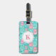 Monogrammed bagagemärkre med det gulliga mönster av grisar i rosor mot en blått- och gröntvattenfärgbakgrund.