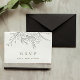 Eleganta och stilrena bröllopssvarskort med en vacker, handritad blomsterbukett på framsidan och alla detaljer för RSVP på baksidan.
