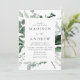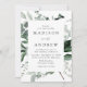 Eleganta bröllopsinbjudningar med dina bröllopsdetaljer inklämda i en rektangulär ram omgiven av eukalyptus, ormbunkar och annan rik grönska. De moderna botaniska bröllopsinbjudningarna vänds för att visa ditt vertikala foto i full bleed. Designad för att samordna med vår Abundant Greenery bröllopssamling.
