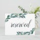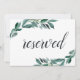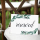 Ange reserverat säte vid bröllop med den här chicen botaniska tecken. Anpassa med en rad anpassningsbar i calligraphy-skriptbokstäver (visas med "Reserved"), framtagen med lush water greenery och eucalyptus löv.