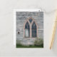 All rights reserved ©Angelandspot Ett landsbygds kyrkfönster i Missouri med smutsig, flagnande målad fasad och några övervuxna ogräs