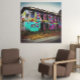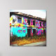 Förstörelse av stadsmiljö övergav huset med färgstark sprutfärg graffiti på det. Hus med brutna fönster och öppna dörrar. Skönhet i förstörelse. Teckningar som skapats av borttappaden eller efter apokalyptisk AI-teknik skapades.