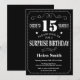 Överraskare 15:e födelsedagsinbjudan. Svarta och vita bakgrunden. Vuxen födelsedag. Manliga Manar eller Kvinnor födelsedag. Barnpojke eller Dam Tonåring tonårsdagen Inbjudan. 13:e 15:e 16:e 18:e 20:e 30:e 40:e 60:e 70:e 80:e 90:e 100:e. Vilken ålder som helst.