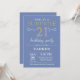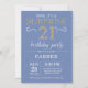 Överraskad 21:a födelsedagsinbjudan med blå bakgrund och Glitter-bakgrund i Guld. Vuxen födelsedag. Manar eller Women Bday Inbjudan. Vilken ålder som helst.