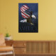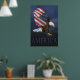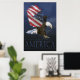 Dramatisk amerikansk agel med USA flagga som vingar mot ett mörk blått himlar. Texten i grund "Amerika". Av D. Bennett från Balance America.