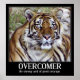 En tiger med speciell ord" Overcomer" "Var stark och ha bra mod". Många har kommit över många sak i livet och det är okej att vara stark och modig. Du klarar det.