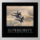 Fyra amerikanska marinblå Änglar under en flygshow som flyger i tät diamantbildning. "Överlägsenhet" i ord.