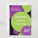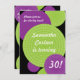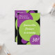 Enstaka cirklar i ljust grönt och lila formar klotformat mot en rik svart bakgrund. Anpassad text placeras inom formerna, varav vissa har ett radiellt mönster. Använd för alla milstolpar på födelsedagen. Bra för tonåringar såväl som vuxna. Finns i alternativa färger med matchande produkter.