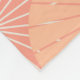 En överlappande design med en persikopersika färg och traditionell kinesisk fläkt.