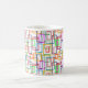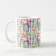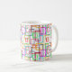 Mugg har en Bauhaus-design av överlappande rektanglar i olika färg.