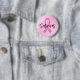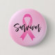 Bröstcancer "Överlevare"-knappen har anpassad modern svart skriptbokstav med symbolisk rosa band och rosa gradientbakgrund.