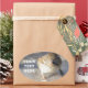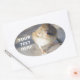 En framsida porträtt av en hussparv med solrosfrö i sin beak och en bestämd attityd. Han har vunnit fröet. Lustigt ovaldekal. Anpassade. Du kan ändra bilden och du kan ändra eller ta bort malltexten.