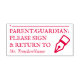 Den här designen av stil gummi frimärke innehåller meddelandet "ÖVERORDNAD/GUARDIAN: VÄNTA SIGN & RETURN TO", plus en rad där ett namnteckning eller initialer kan skrivas ovan. Den har också en anpassade- eller lärarinna namn. Det skulle kanske kunna användas av en lärare, lärare eller lärare för att be en förälder eller en eller flera väktare i student att granska och bekräfta det märke som ett student fick på ett frågeformulär, ett test, en essä, en papper eller något annat skoluppdrag.
