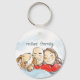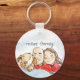 Den här nyckelkedjan har en illustration av en söt marionett och dess föräldrar, en bald och en brunettkvinna. Du kan anpassa texten.