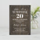 Överraskningsinbjudan till 20-års bröllopsdag. Rustik design med mörkt brunt trämönster. Utmärks av elegant vit scriptfont. Kan anpassas till vilket år som helst! Skicka ett meddelande om du behöver ytterligare anpassning.