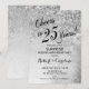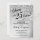 Elegant design med falskt glitter silver med konfetti och svart skrivstil. Skål för 25 år! Perfekt för en stilig fest. Meddela mig om du behöver ett anpassat år.