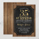 Rustik överraskning 35-års bröllopsdag firande inbjudan. Elegant klassiskt design i svart och falskt glitter guld och mörkt brunt trä mönster. Har elegant script teckensnitt. Meddela mig om du behöver ytterligare anpassning