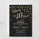 Elegant design i svart och falskt glitterguld med konfetti och skrivstil. Skål för 40 år! Perfekt för en stilig fest. Meddela mig om du behöver ett anpassat år.