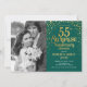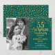 Överraskningsinbjudan till 55-års bröllopsjubileum med foto. Elegant design i smaragdgrönt med falskt guldfont och konfetti. Skicka meddelande om du behöver anpassat år.