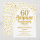 Överraskningsinbjudan till 60-års bröllopsdag. Elegant design i vitt med falskt guldskrift och konfetti. Perfekt för en stilig firande av 60 års äktenskap.