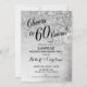 Elegant design med falskt glitter silver med konfetti och svart scriptfont. Skål för 60 år! Perfekt för en stilfull fest. Meddela mig om du behöver ett anpassat år.