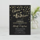 Elegant design i svart och falskt glitterguld med konfetti och skrivstil. Skål för 65 år! Perfekt för en stilig fest. Meddela mig om du behöver ett anpassat år.