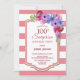 Rosa strimlade blommigten 100 födelsedagsfest inbjudan.
